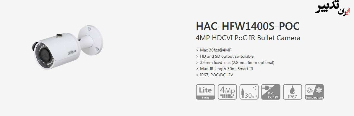 دهد. دوربین مداربسته داهوا DH-HAC-HFW1400SP دارای دید در شب رنگی است. این دوربین دارای بدنه آلومینیومی، ضد آب بوده و این دوربین بولت داهوا دارای گارانتی 2 ساله می باشد.